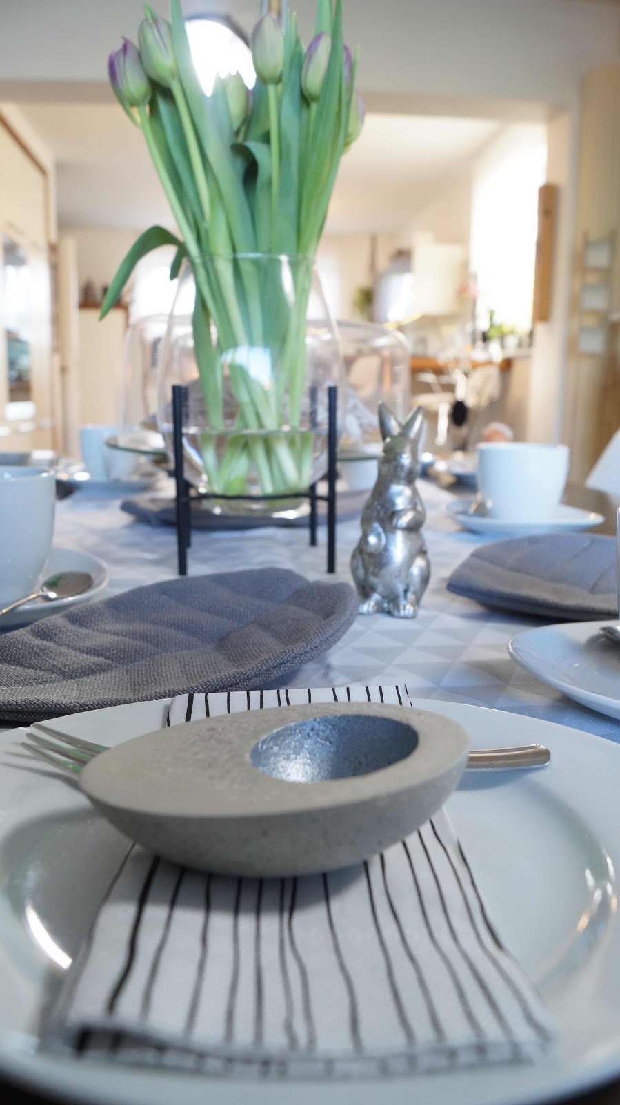 AntwortenLöschenwas für eine geniale Idee, deine Betoneier! Sehr schön! Die Metallic-Farben passen sehr gut zum Beton und dein Tisch ist toll gedeckt - alles so stimmig! Schade, dass ihr den Geburtstag deines Mannes nur zu zweit feiern könnt. Ich wünsche euch trotzdem eine harmonische Zweisamkeit und einen wundervollen, feierlichen Ostersonntag.